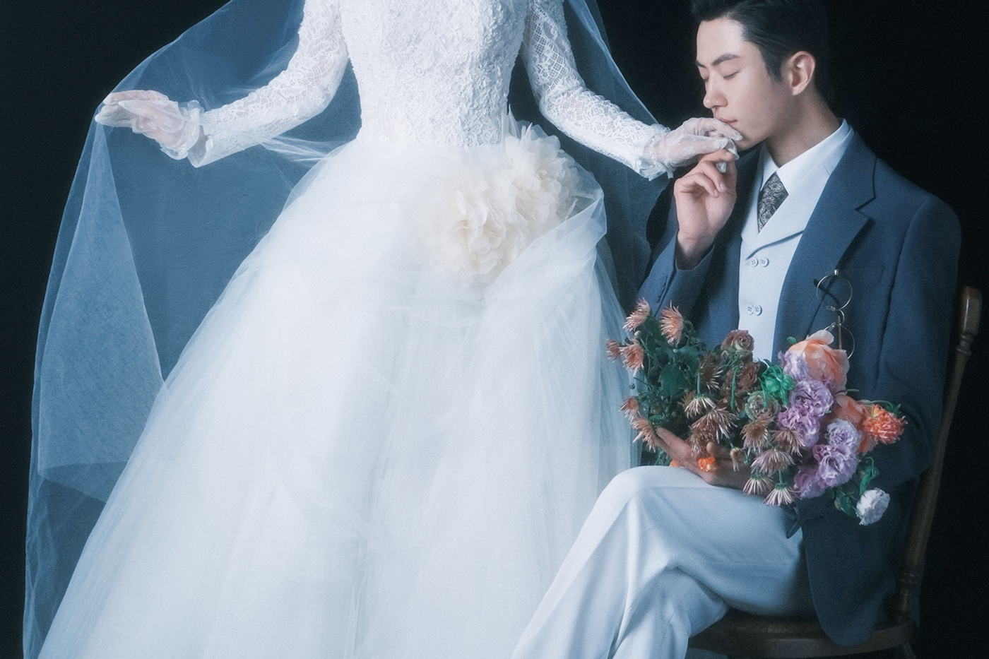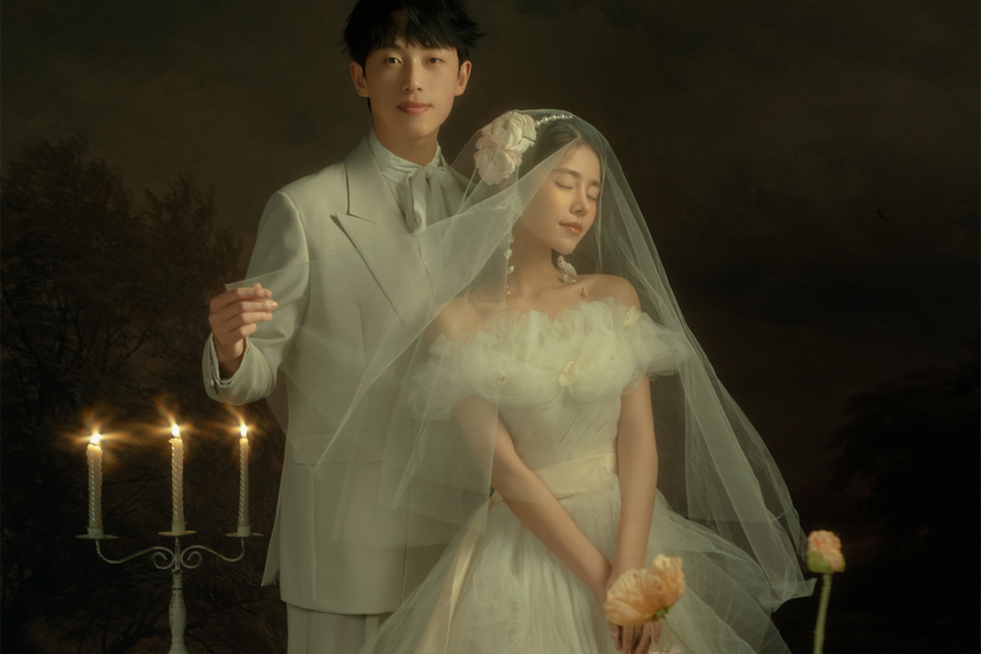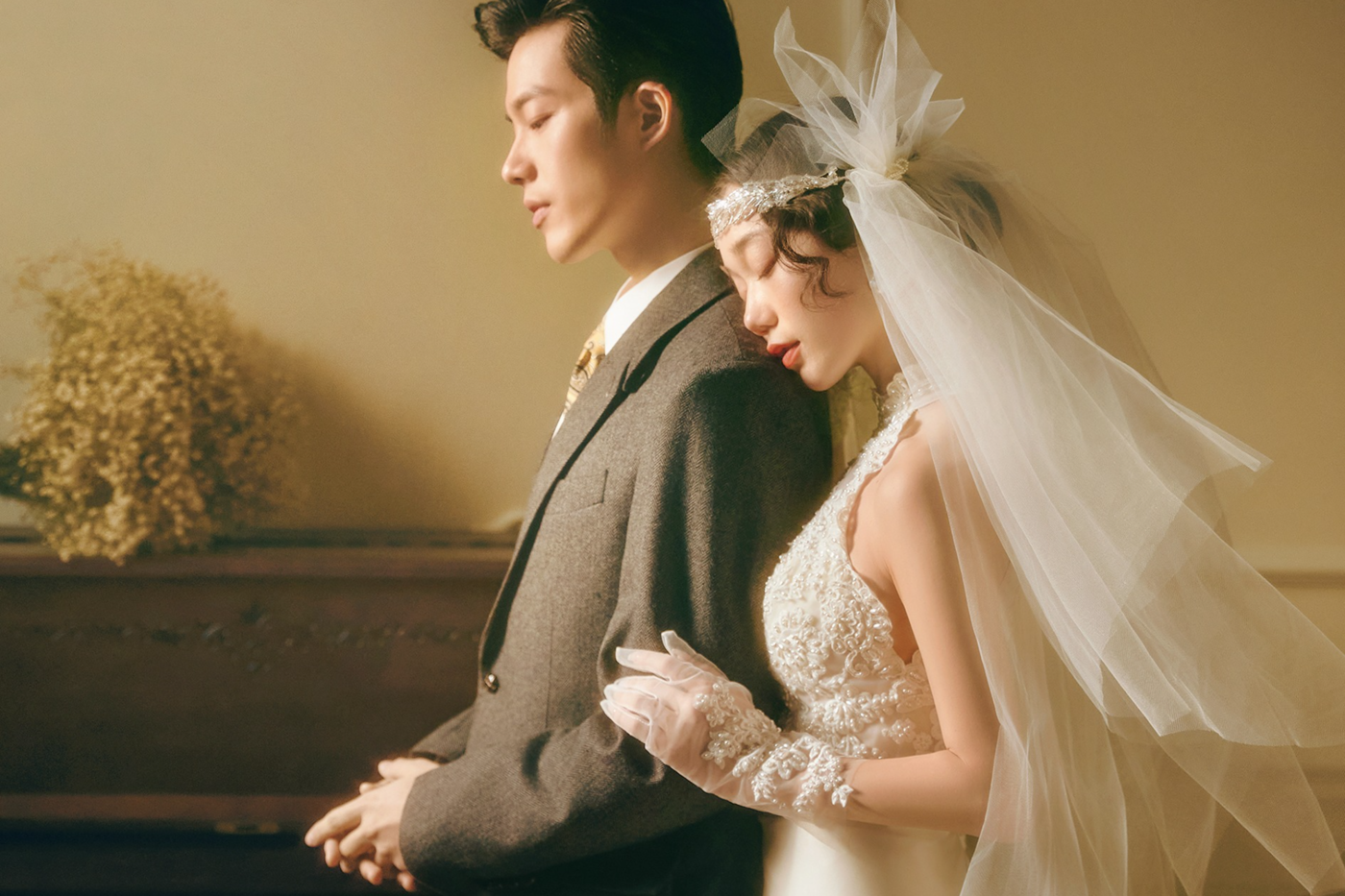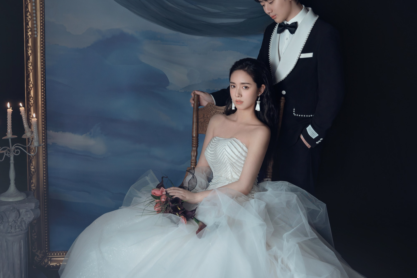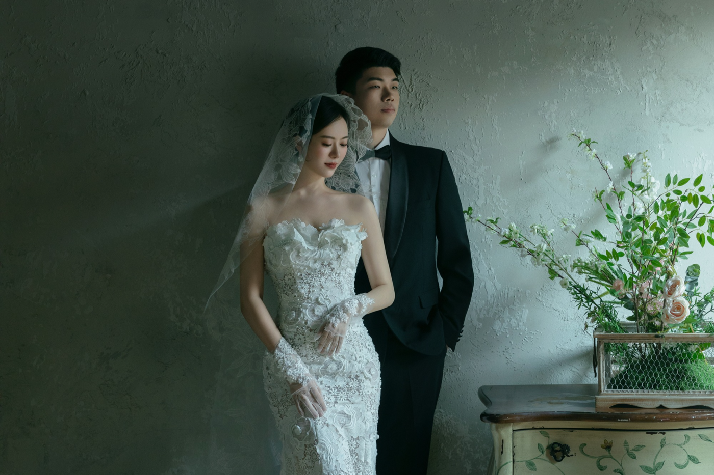 - 风格:法式|内景|复古|氛围感 内景拍摄曹杰摄影独创研发风格 - 这组内景婚纱照完美诠释了法式浪漫的精髓 复古色调搭配柔美烛光✨光影 每一处细节都透着高级感😎 - 新娘选择鱼尾婚纱搭配蕾丝😍头纱 超显气质头纱轻轻垂下,慵懒又优雅 新郎西装搭配领结,完美诠释 法式绅士风度😎 - 背景选择复古家具鲜花烛台布置 细节满分,随手一拍就是大片既视感🔥[更多…]