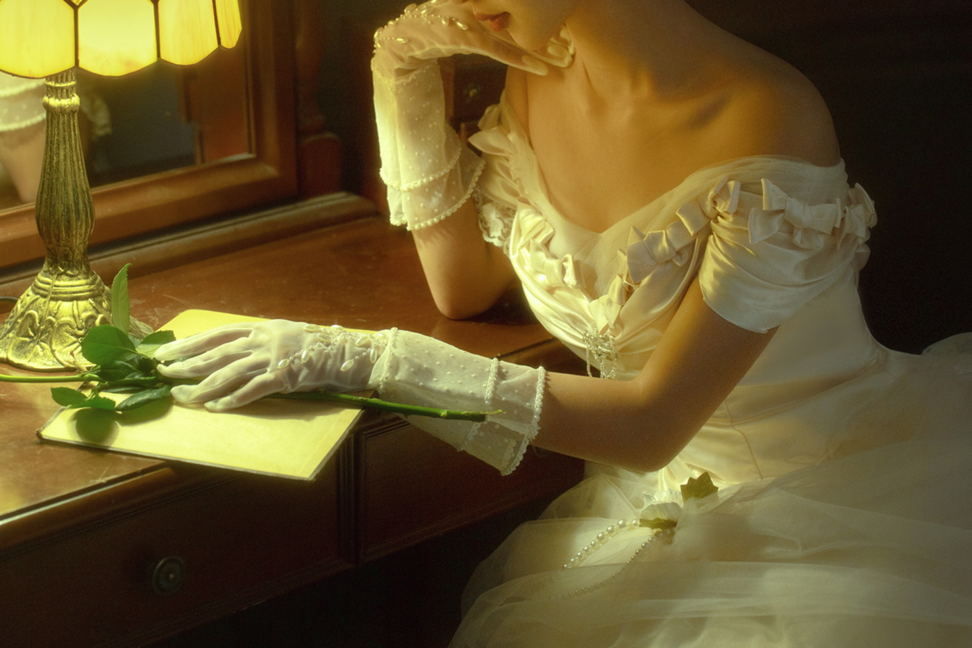 以油画布为背景的室内婚纱照 散发出迷人复古的文艺气息~ 油画婚纱照的精髓在于不经意间的优雅~ 从而营造出一种浪漫而神秘的氛围~ 复古的头纱搭配蕾丝手套 大裙摆的礼服搭配精致的配饰 让整个造型更加完美~ 法式的艺术风情更是为这组油画婚纱照增添了一份优雅和高贵~[更多…]